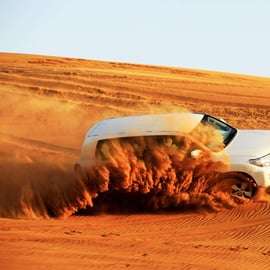 Experience an exciting Dubai desert adventure with a thrilling Jeep dune bashing, a camel ride, a quad bike ride and sandboarding. Perfect for adrenaline seekers.