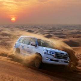 Next, get your heart pumping with some dune bashing and sandboarding. Slide through the sand or enjoy off-roading in the desert before heading out into the desert to see the beautiful sunset.