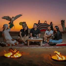 Enjoy Dubai night desert visit with animal spotting, sandboarding, camel ride, sunset views, stargazing. Starting with a traditional welcome of “Arabic tea/coffee and dates”