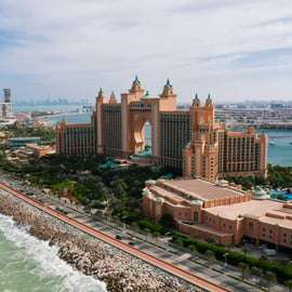 Afterward, visit the Souk Madinat, an Arabic-style shopping center with many shops and restaurants. This place offers an interesting mixture of tradition and modernity and invites you to the majestic view of the luxury hotel Atlantis on Palm Island.