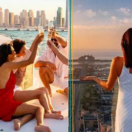 Enjoy panoramic views of Dubai’s skyline and Palm Jumeirah with an entry ticket to The View at the Palm. Explore the terraces, then relax on a scenic afternoon yacht tour.