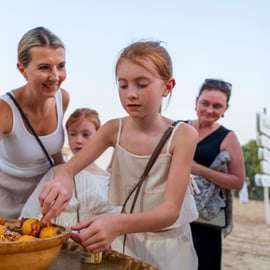 Místní ženy vám předvedou umění emirátské kuchyně – přípravu luqaimat (smažené kuličky) a placky. Strávíte čas v vesnici, zúčastníte se beduínských zábavných programů a vychutnáte si autentickou šestichodovou emirátskou večeři.
