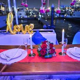 Představte si: gurmánská večeře, nezapomenutelný zážitek a ohromující panoráma dubajské metropole jako dokonalé kulisy. Prožijte večer plný romantiky a luxusu na palubě elegantní jachty. Tohle je zážitek, na který jen tak nezapomenete!