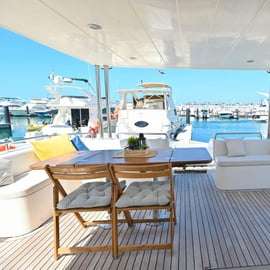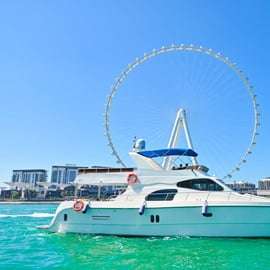 Nastupte na palubu naší luxusní jachty v Dubaji a vydejte se na okouzlující plavbu plnou romantiky a rozkoše. Jakmile se vydáte na moře, uchvátí vás úchvatné panoramatické výhledy na ikonickou dubajskou panoráma, zalitou zlatými odstíny zapadajícího slunce.