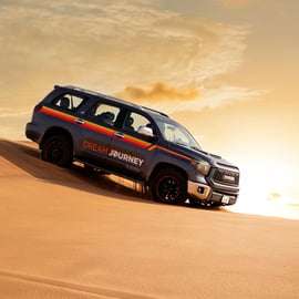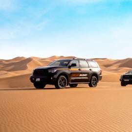 Poté se vydejte do pouště v terénním voze Land Cruiser a držte se pevně, protože vás čeká jízda na horské dráze po dunách plná skluzů a smyků.