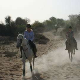 Zanurz się w relaksie podczas spokojnej przejażdżki konnej po malowniczym terenie Dubajskiego Parku Narodowego. Poczuj urok kontrastu: bujnej zieleni leśnych ścieżek, usianych drzewami ghaf, i rozległych, piaszczystych wydm. To niezapomniane przeżycie pozwoli Ci odkryć piękno natury i jednocześnie nauczyć się podstaw opieki nad końmi – od mycia i pielęgnacji, aż po karmienie.