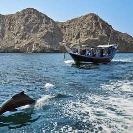 O 10:00 wyruszysz na całodniowy rejs do spektakularnych fiordów Musandam.
