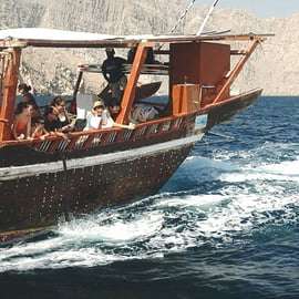 Zanurz się w starożytnych krajobrazach Omanu Musandam Khasab na tradycyjnej żaglówce dhow. Zatrzymaj się, aby popływać i ponurkować w zatoczkach, i ciesz się orientalnym lunchem w formie bufetu podczas tego całodniowego rejsu.
