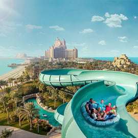 Przygotuj się na dawkę adrenaliny w Aquaventure! Czekają na Ciebie ponad 30 zjeżdżalni i atrakcji, w tym pierwsza na świecie podwójna zjeżdżalnia wodna – prawdziwe wyzwanie dla śmiałków! Zrelaksuj się na leniwej rzece, najdłuższej w Dubaju, lub rozłóż ręcznik na 500 metrach prywatnej plaży. Staw czoła Aquaconda, mrocznemu i krętemu tunelowi wodnemu, pokonaj rwącą rzekę pływową lub odczuj potęgę fal w strefie The Torrent. A może chcesz zmierzyć się z samym królem morza w Wieży Posejdona?