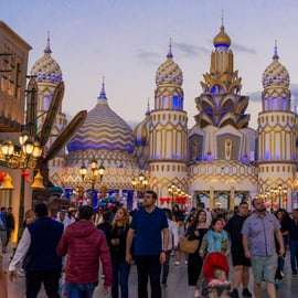Globalna Wieś Dubaju – to prawdziwa gratka dla całej rodziny, idealne połączenie rozrywki, zakupów i wyśmienitej kuchni! Znajduje się w samym sercu miasta i co roku przyciąga gości z całego świata, oferując fascynującą podróż przez różnorodne kultury.