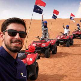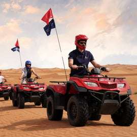 Przeżyj niezapomnianą przygodę na pustyni Lahbab! Wybierz opcję 4-godzinną, wypełnioną emocjami: szaleńczą jazdą po wydmach, sandboardingiem i relaksującą przejażdżką na wielbłądzie. A może wolisz 7-godzinną wersję, z dodatkiem pysznego BBQ i jeszcze większą dawką pustynnej magii?