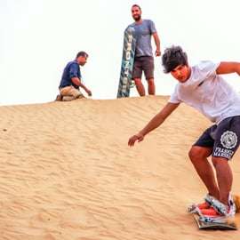 Rozpocznij dzień od niezapomnianej przygody na pustyni, gdzie spokój arabskich wydm otuli Cię niczym aksamit. Zanurz się w niezwykłym pięknie krajobrazu, poczuj urok jazdy na wielbłądzie, spróbuj swoich sił w sandboardingu i rozkoszuj się smakiem tradycyjnych arabskich przysmaków.
