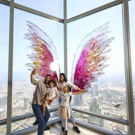Wreszcie, stań w zachwycie na Burj Khalifa, najwyższym budynku na świecie. Jeśli wybierzesz opcję biletu, wejdź na taras widokowy, aby podziwiać niezrównane widoki na miasto i Zatokę Arabską, co jest naprawdę niezapomnianym przeżyciem.