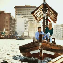Ciesz się spokojnym rejsem łodzią Abra po kultowej zatoce Dubai Creek, płynąc z Bur Dubai do Deira.