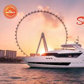 Wejdź na pokład tego pięknego mega jachtu, aby przeżyć niezapomniane 2,5-godzinne doświadczenie zachodu słońca w sercu Dubaju. Gdy złote słońce schodzi za arabski horyzont, delektuj się koktajlami i napojami z otwartego baru, skwierczącymi szaszłykami z grilla (wegetariańskie i niewegetariańskie) i orzeźwiającymi półmiskami z owocami – wszystko przygotowywane na świeżo na pokładzie.