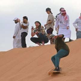Przeżyj niezapomnianą przygodę, pędząc po wydmach arabskiej pustyni potężnym buginem! Poczuj dreszcz emocji podczas szalonej jazdy terenowej. A po zakończonej przygodzie, odpręż się w tradycyjnym obozie beduińskim, delektując się pysznym barbecue i fascynującymi pokazami.