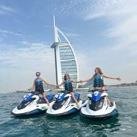 Przeżyj niezapomnianą przygodę i podziwiaj Dubańską panoramę z zupełnie nowej perspektywy! 30-minutowa przejażdżka skuterem wodnym to zastrzyk adrenaliny i okazja do podziwiania słynnych drapaczy chmur, takich jak Burj Khalifa i Burj Al Arab, z wyjątkowego, morskiego punktu widzenia.