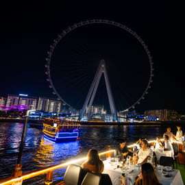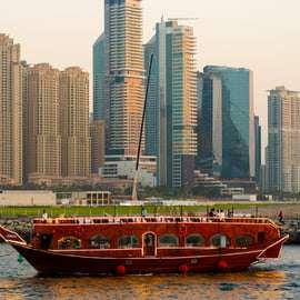 Poznaj błyszczącą panoramę i luksusowe nabrzeże Dubaju podczas rejsu dhow po dubajskiej marinie. Ciesz się występami rozrywkowymi na żywo, delektując się kolacją w formie bufetu.