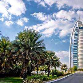 >Burj Al Arab (świetna okazja do robienia zdjęć, jedyny na świecie 7-gwiazdkowy hotel)