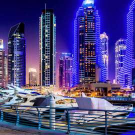 >Widok na panoramę Dubai Marina z przystankiem na sesje zdjęciowe