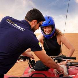 To all-inclusive safari na pustyni zaczyna się od odbioru z hotelu w pojeździe 4x4, który zabierze Cię do majestatycznych Czerwonych Wydm Lahbab, najbardziej malowniczego pustynnego krajobrazu Dubaju. Po 50-minutowej malowniczej przejażdżce zatrzymasz się na krótką przerwę, podczas gdy Twój przewodnik przygotuje pojazd do rajdu po wydmach. Dla dodatkowej emocji możesz rozpocząć swoją przygodę od 30-minutowej przejażdżki quadem po pustyni, korzystając z w pełni automatycznego quada Yamaha pod profesjonalnym nadzorem.