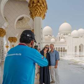 Twój przewodnik spotka się z Tobą w hotelu w Dubaju lub Abu Zabi i przywita Cię w nowoczesnym, klimatyzowanym pojeździe, którym pojedziesz do Abu Zabi. Po drodze zrelaksuj się i podziwiaj malownicze widoki na Corniche i lśniące wody Zatoki Perskiej.